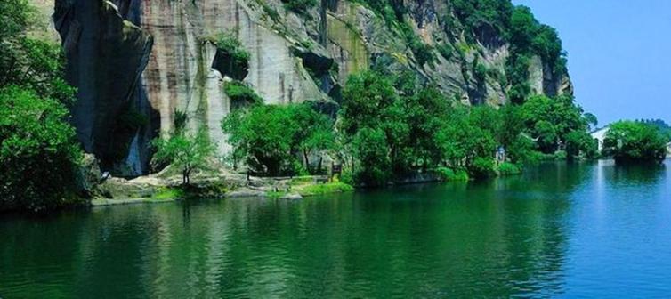 东湖位于绍兴城东箬篑山麓,昔日秦始皇东巡至会稽,于此供刍草而得名。自汉代起,民工相继至此凿山取石,至隋,越国公杨素为修越城,大举开山取石。经千年鬼斧神凿,遂成悬崖峭壁,奇潭深渊,宛如天开。“勿谓湖小,天在其中”。东湖, 宛如一使人玩味无穷的水石盆景佳作。湖中崖壁蹉砣,有的对峙如门, 有的倒悬若堕 ,有的深曲如洞,水色深黛、清凉幽静,巧夺天工之奇观,其风格独特,使人陶醉。