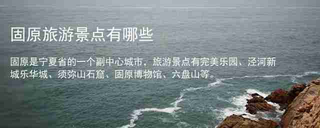 固原是宁夏省的一个副中心城市,旅游景点有完美乐园、泾河新城乐华城、须弥山石窟、固原博物馆、六盘山等。