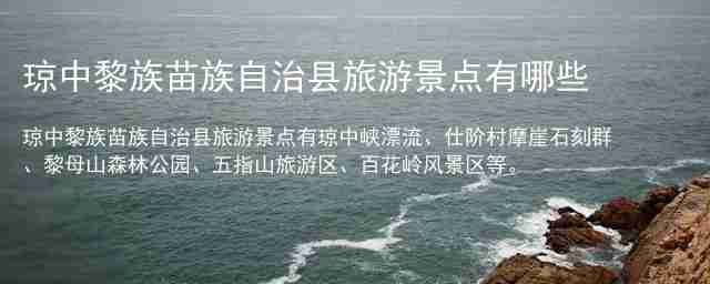琼中黎族苗族自治县旅游景点有琼中峡漂流、仕阶村摩崖石刻群、黎母山森林公园、五指山旅游区、百花岭风景区等。