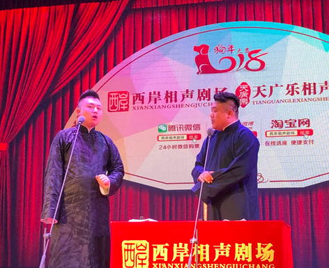 相声大概2个小时,一场电影的时间,虽然是在电影院说的相声,没有茶馆那么有气氛,嗑瓜子,喝茶等,但是整体感觉还是不错的,五段相声,学逗唱,样样不少。