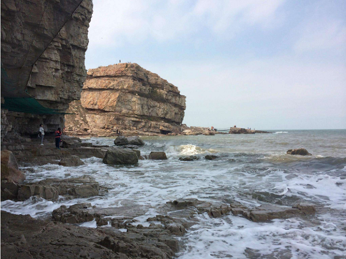 九丈崖景区位于北长山岛西北角,九丈崖紧邻月牙湾,是岛上又一处精华。那里的悬崖以陡峭和险峻而著称,与月牙湾有着不一样的精彩,也是看日落日出的好地方。九丈崖的九字是个约数,但见高耸入云的悬崖从海边拔地而起,那一个震撼了得!照片上看不出有多壮观,当你真正置身悬崖下边的时候,仰望绝壁万丈,就不得不感慨大自然的神奇造化了!大海中能有如此鬼斧神工的自然景观,在国内是没有第二个地方的。