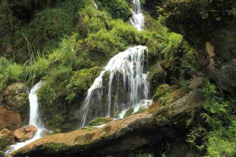 当我们到达白云山后,去的第一个景点九龙瀑布,沿着弯弯曲曲的石阶小道往山下走,远远的就听到了潺潺的流水声,我兴奋地加快了下山的步伐...来到瀑布前,只见水从高高的悬崖直泻下来,水珠四溅,悬泉抛珠,云飘雾绕,如群龙奔腾,似玉练旋舞。水涌下时犹如九条龙,景色非常雄伟壮观。导游阿姨告诉我们若逢丽日当空,彩虹映现,景色更加奇艳迷人。