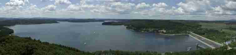 位于梅河口市西南,是建于1958年的人工湖。水库的山水以秀著称。山水之秀附以美丽的传说,构成一幅秀美的水乡泽国。主要景点有:东园、西园、蛇山、钓鱼台度假村,梨花湾、金龟吸水、神仙洞、天然鹭岛等。