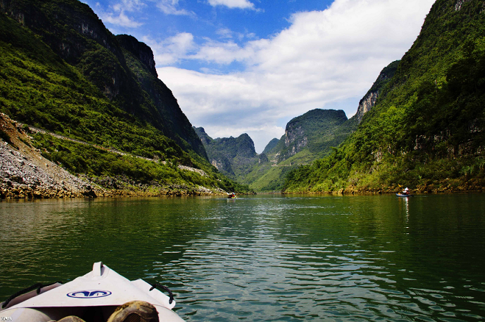 悠悠红水河源远流长,万年长河突破崇山峻岭流淌在南国的峰丛峰林之间,两岸奇山延绵26多公里,保留原红水河道和多级河床之形态,一年四季可通航、漂流。两级河床两幅画,层次分明,错落有致,成为天下绝滩,更有多处沙洲,沙洁净而石玲珑,草青翠而竹环抱。河道曲折,有“八弯八滩”,岸上滩边草木生菲,悬崖险峻、秀美,河滩乱石嶙峋,千奇百怪。如神似仙,若禽似兽,绝壁上怪画斑驳,疑是九天鬼符。为此,被人们称为奇滩怪峡。
