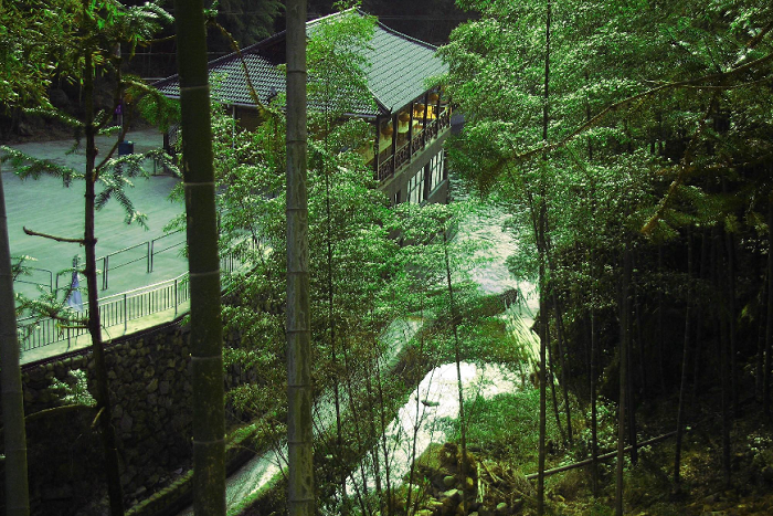 白水涧景区依山傍水,临涧立崖,水之清、竹之翠、石之奇,近在咫尺,而又恍若隔民的飘渺意境,让人如入仙境,如游梦幻。一条鉴真高僧曾涉足攀登过的千年古道,婉蜒在密密竹林这中,更给白水涧增加了三分神秘,七分幽远。