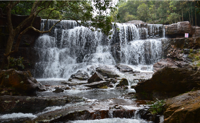 八寨沟是一块躲在深闺待人识的处女地,是一个幽谷探险、放飞夏日心情的清凉世界。 区内山峦重叠,云遮雾障,林海茫茫,是广西东南部森林植被保护和恢复得较好的地带。景区沟谷全长8公里,有砂页岩山涧地貌,溪河蜿蜒,河水湍急,清澈透亮,有80多个大小各异的泉潭,小的像浴盘,大的可同时容纳百人游泳戏水。落差大小不同的瀑布随着山涧的延伸随时可见,流底深潭令人生畏。