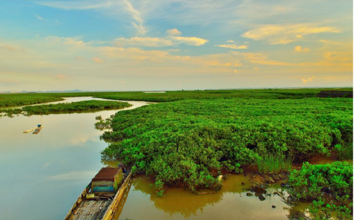 海虾楼是一栋坐拥茅尾海红树林保护区的高层水闸建筑,前有大片红树林为主的湿地保护区,后有护坡海堤及万亩大虾养殖基地,构成独特的沿海风光,是广大摄影爱好者、观光者的首选胜地,可以观鸟、看潮起潮落、日落、休闲、散心的好去处。