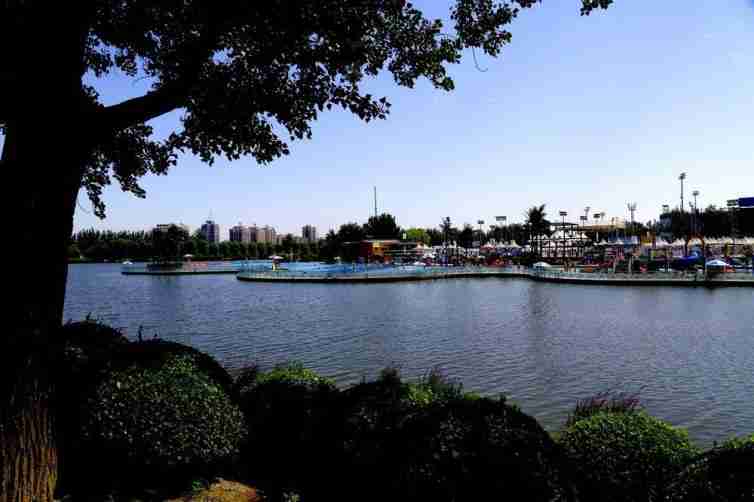 公园的主体布局就是一圈大大的湖围着两座小山,小山上树木繁茂。应该是挖湖筑山那种,因为整个安国甚周边数百里找不到一处有山或有坡度的地方。公园是那种最普通,也是最规范的,一切看上去都那么布局合理赏心悦目湖里水比较清,湖边有许多人钓鱼弄虾,我第二次去时同家人坐脚踏船绕湖游了一圈,湖道岸上绿树成荫,不时传来练声者阵阵歌声,湖面微风习习,偶见恋人相依细语,好不富有诗情画意,走走停停花了一个多小时。