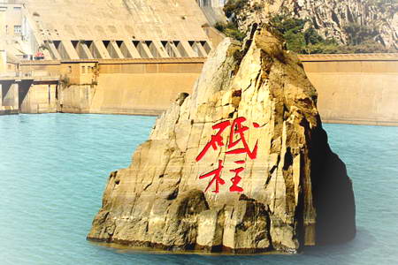 在三门峡大坝的下方,一座不起眼但却象擎天柱似的石岛巍然矗立,它就是数千年来被世人传颂并被誉为中华民族不屈不挠精神象征的——中流砥柱石。