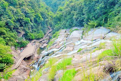 流泉飞瀑,给我们意外惊喜。谷中多为阶梯式的花岗岩山体,形成大量瀑布迭水,有大小瀑布10几个,姿态各异,绵延近十里。