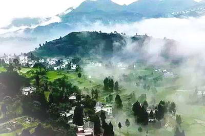 紫林山度假区山高地阔,风景秀丽,特别是雨后初晴的早晨,万里长空碧蓝如洗,山间白雾如履仙境;远处一个个山头,有如万顷碧波中一个个小岛浮出海面。当朝阳从地 平线上缓缓升起,万里雾海染上一抹淡淡的红色。奇异的景色受到摄影家、户外爱好者等众多度假游客的青睐。
