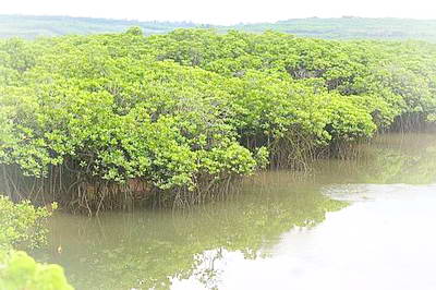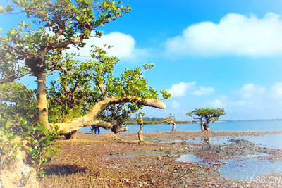 广泛生长着的红树林,是生长在热带和亚热带周期性遭受海水浸淹的海岸潮间带的乔木和灌木,因其汁液可作红色染料而得名,是世界上珍稀濒危植物。