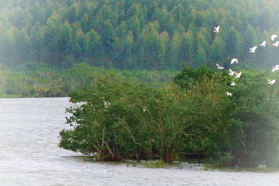 各科树种盘根错节相互依存,依岸生长,延绵近十里,既是科学研究的天然宝库,也是海上抵御台风和海啸的坚强卫士;在此栖息的鸟类有159种,鹭类、行鸟鹬类等候鸟一直是保护区的常客。